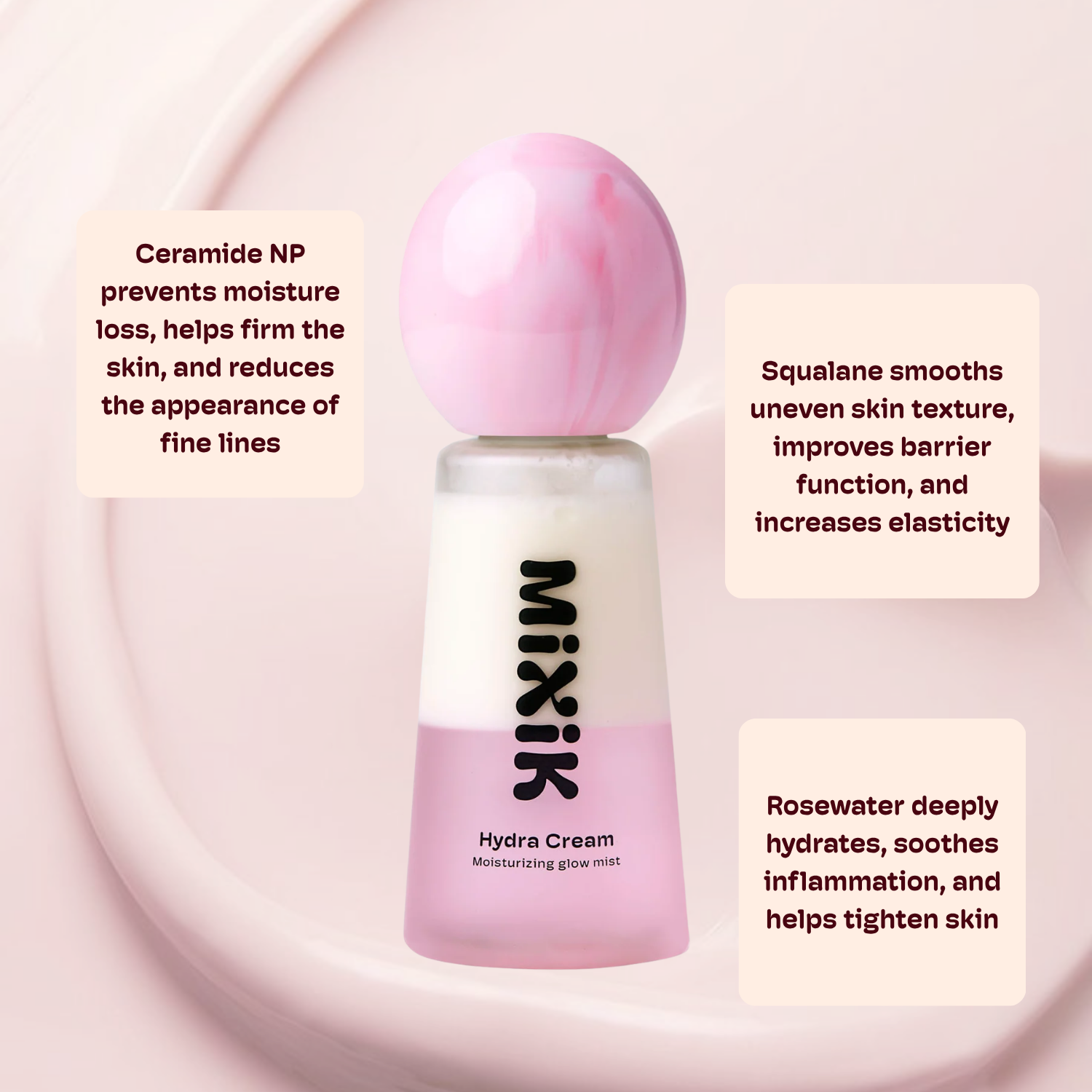 The #1 best seller in our collection, the Hydra Cream Moisturizing Mist is unlike any moisturizer or cream you’ve used before.