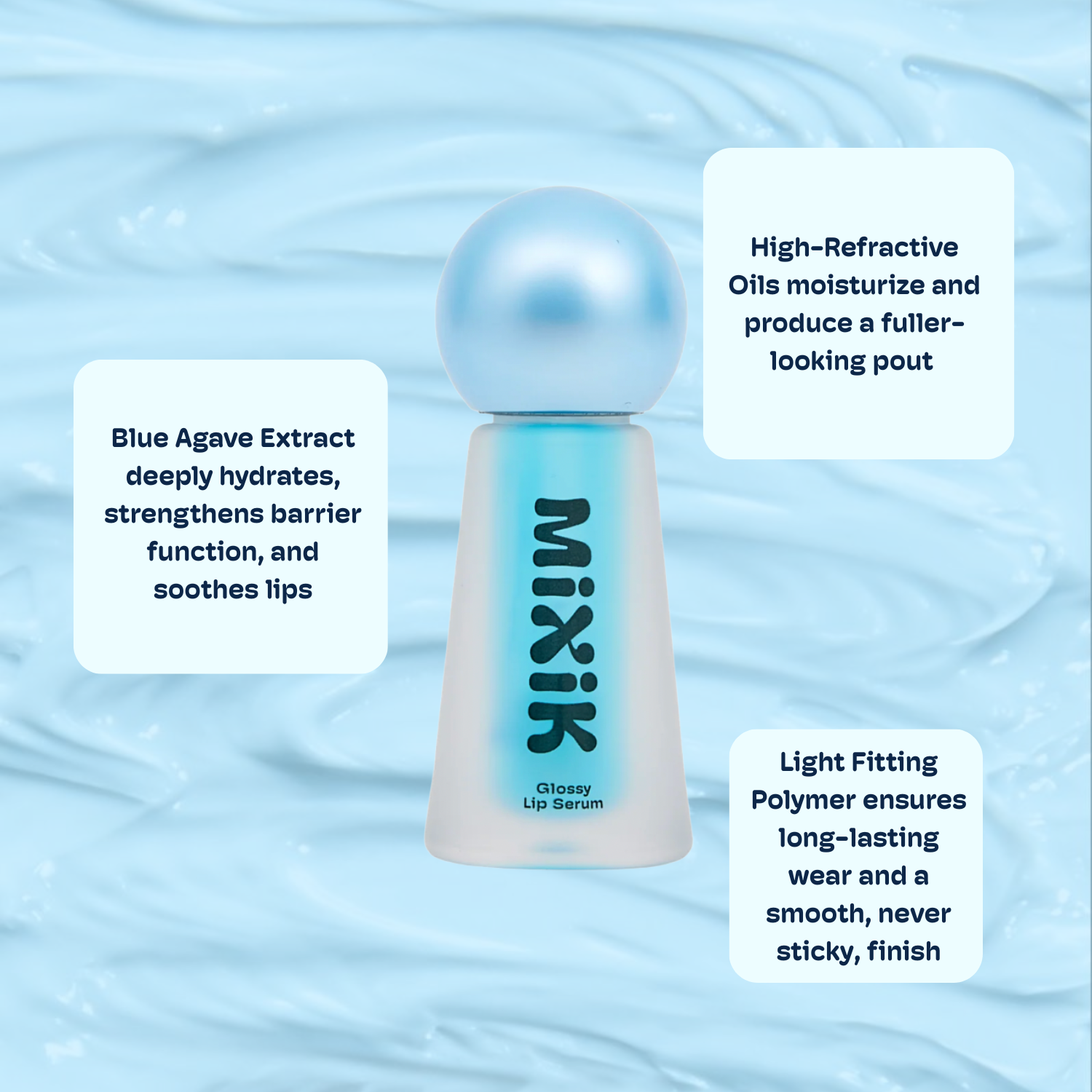 Say hello to soft, supple lips with our Glossy Lip Serum, your new go-to for hydration, shine, and nourishment. This high-performance lip serum is infused with blue agave extract, olive oil, and avocado oil to deeply moisturize and strengthen the lip barrier, leaving your lips smooth, plump, and protected all day (and night) long. The secret to its silky, weightless texture? Our Light Fitting Polymer glides on effortlessly for a high-shine finish without the sticky feel.
